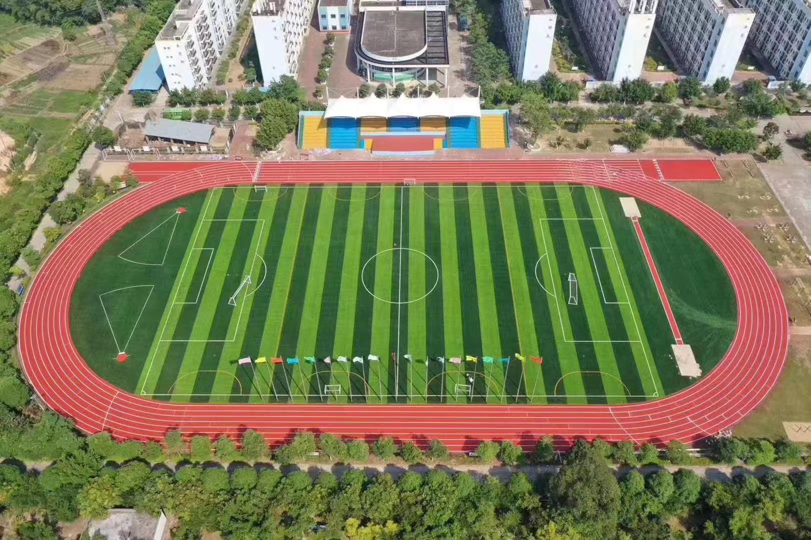 塑膠跑道又稱全天候田徑運(yùn)動(dòng)跑道,由聚氨酯預(yù)聚體、混合聚醚、廢輪胎橡膠、EPDM橡膠粒或PU顆粒、顏...